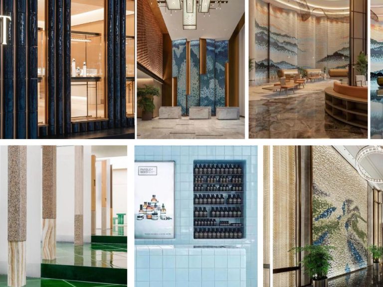 The obsessive attention to colours, shades, combinations of patterned tiles and plain colours makes these assembling unique.